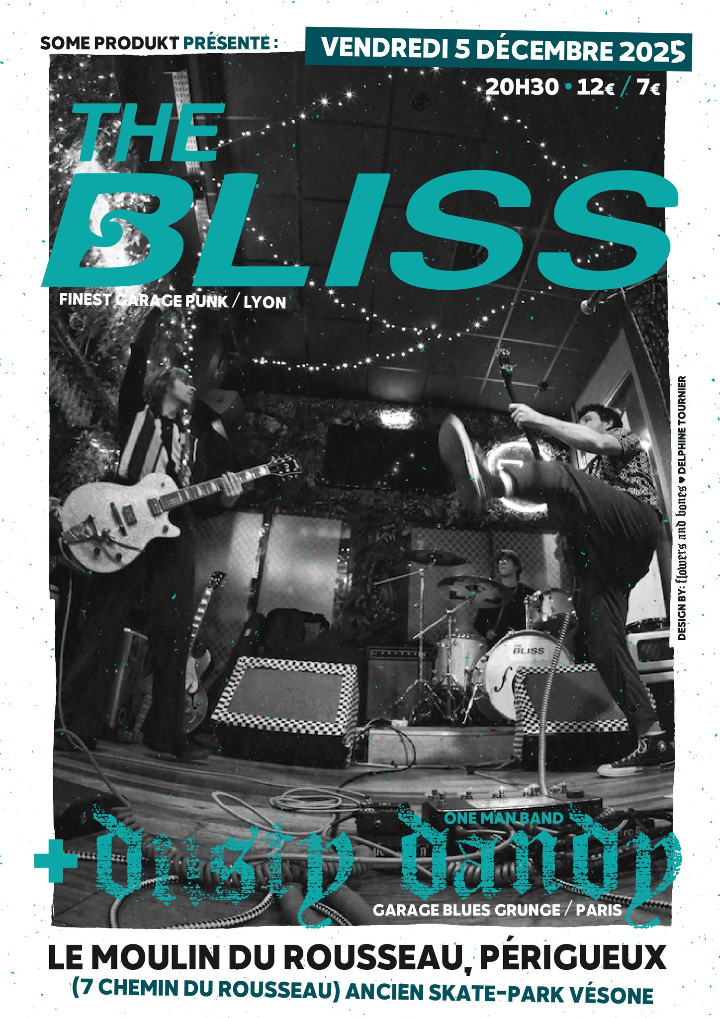 “Bliss”, en français, signifie la béatitude, le bonheur suprême. C’est précisément ce qui anime Mickaël (guitare/voix), Corentin (basse) et Paul (batterie), trio explosif bercé par le Punk, le Rock’n’Roll et le Garage.
